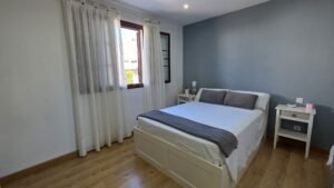 Construida sobre una parcela de 300m², cuenta con 5 dormitorios, 2 baños, salón con salida directa al jardín, cocina americana y solana. Dispone además de una plaza de aparcamiento privada, piscina comunitaria y numerosas plazas para invitados dentro del complejo.